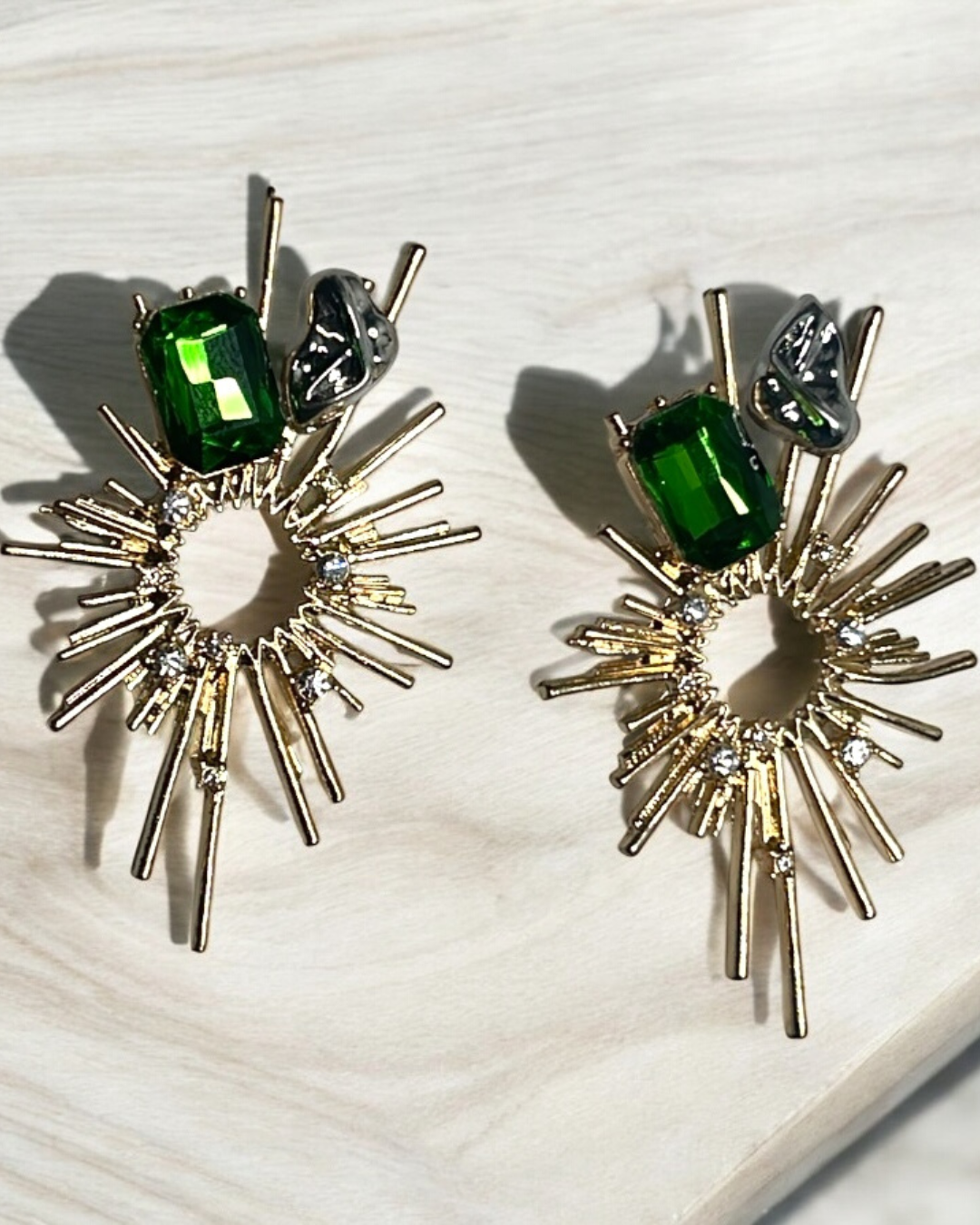 Shine unapologetically in our Glow Up Statement Earrings—featuring a vibrant emerald-cut stone and an eye-catching gold starburst design. These bold yet lightweight earrings are crafted for the woman who knows that her presence is the statement.