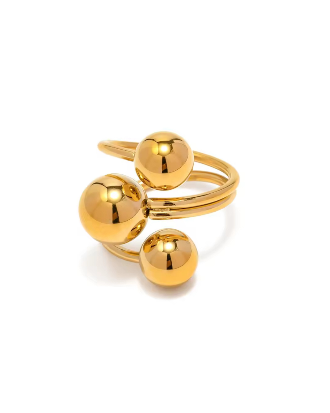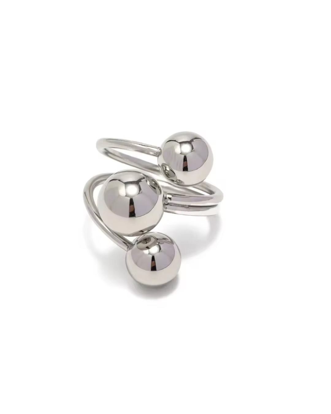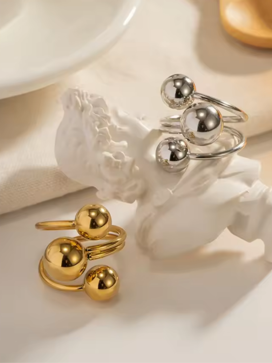 The open design makes it super comfy, while those three glossy spheres? Instant luxury vibes. Whether you’re holding a cocktail, tapping away on your laptop, or fixing your hair in the mirror this ring makes sure all eyes are on you.
